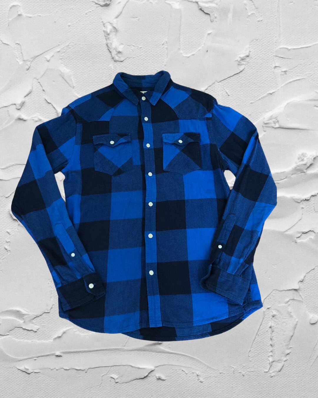 青チェック柄シャツ size:s